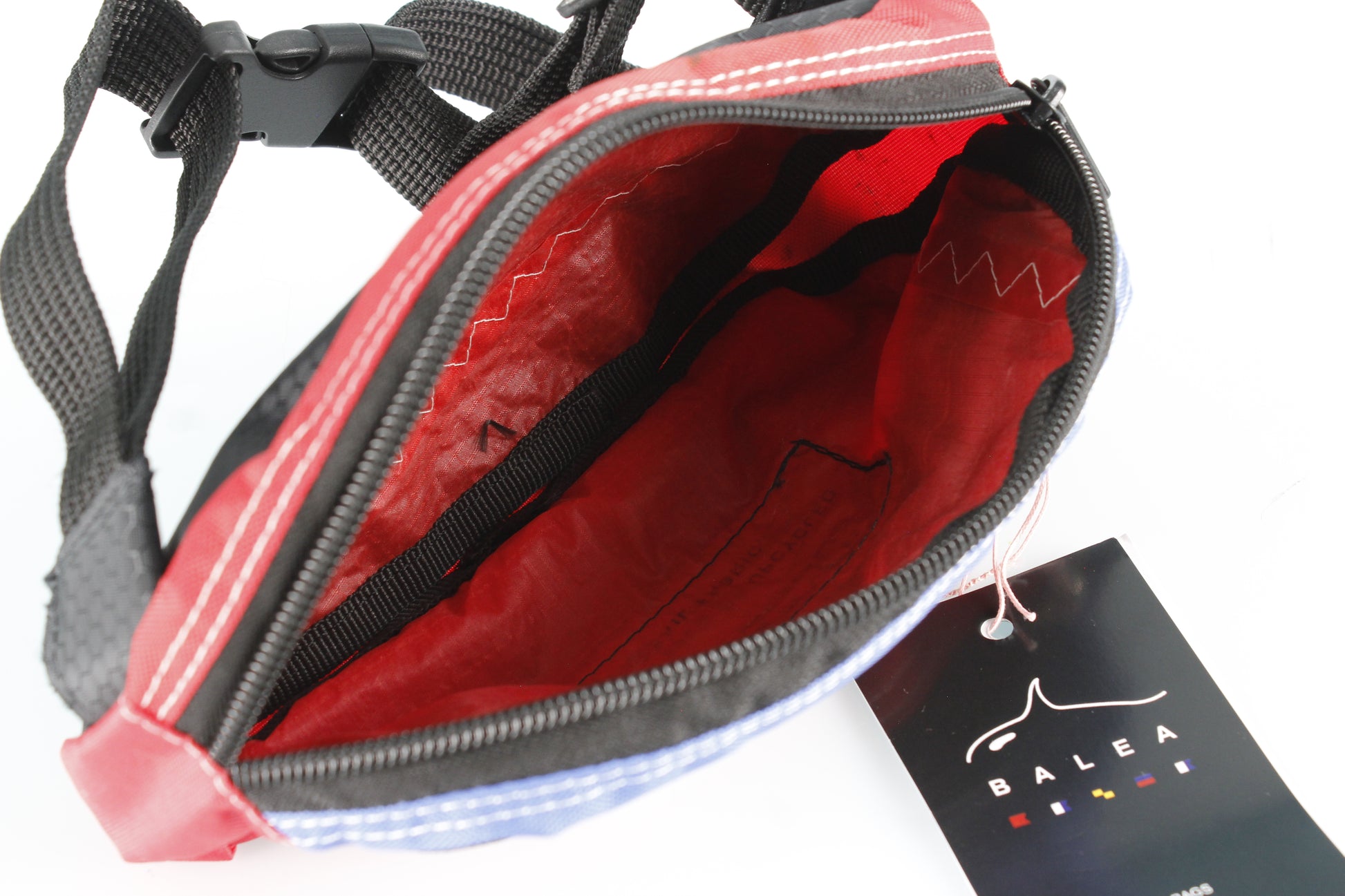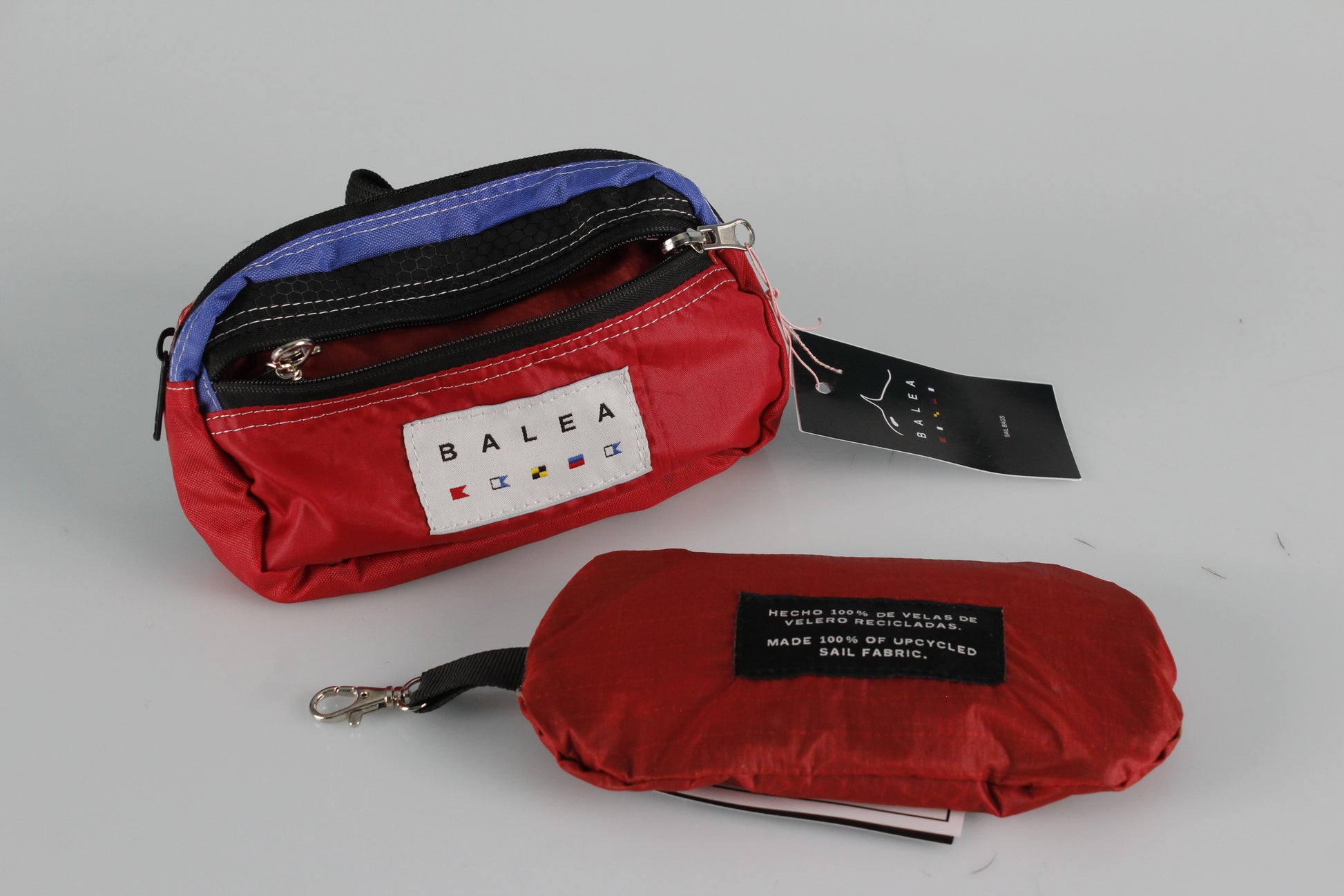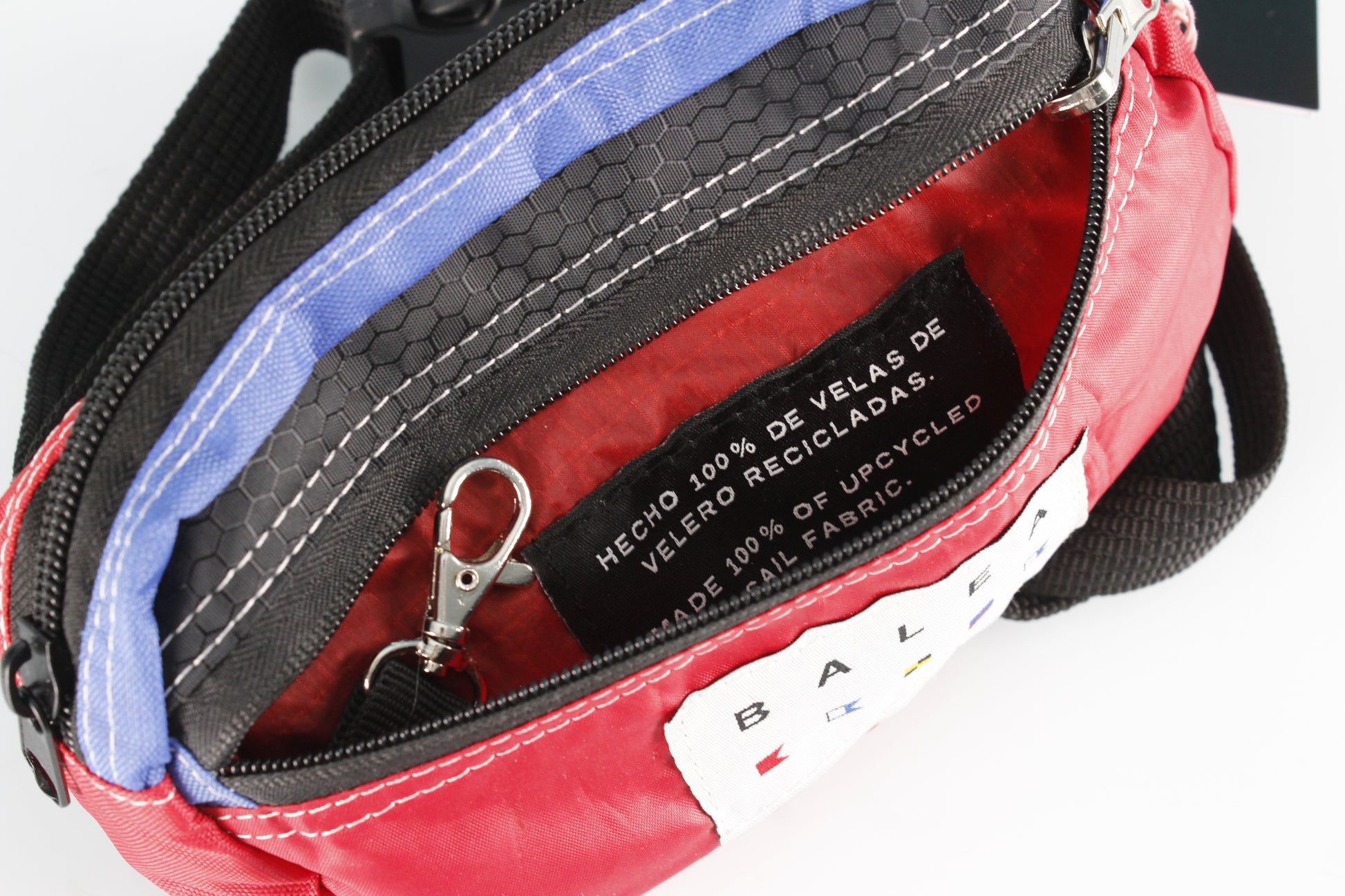 Esta bolsa está hecha de tela de vela reciclada que proviene de una vela que ha terminado su vida útil de navegación. Tiene historia y aventura en su tela.