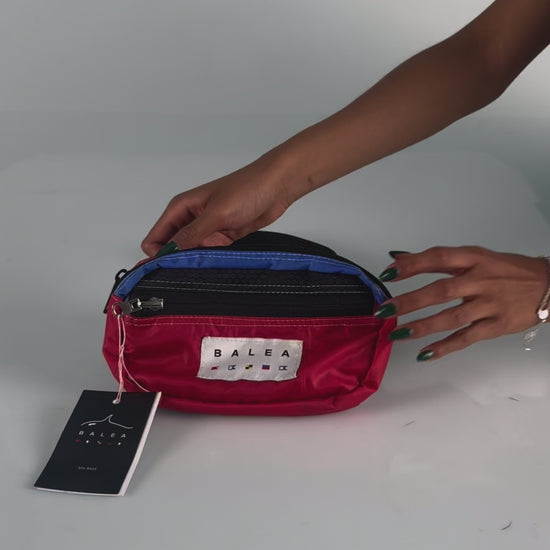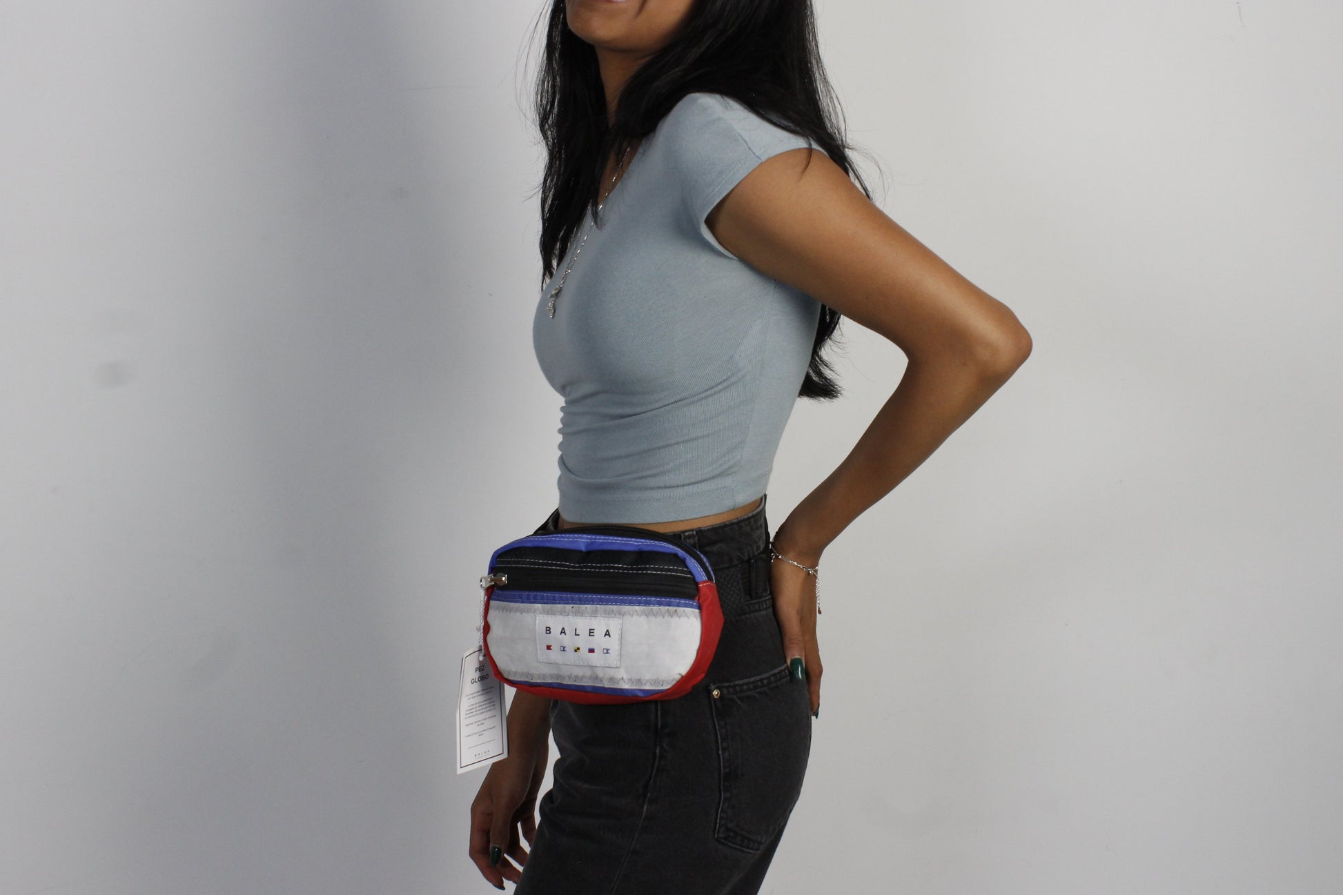 El Pez Globo es un diseño de bolso tipo cangurera pequeña. Perfecto para tener las manos libres al viajar y tus cosas de valor cerca. Cuenta con dos compartimientos para mayor organización.